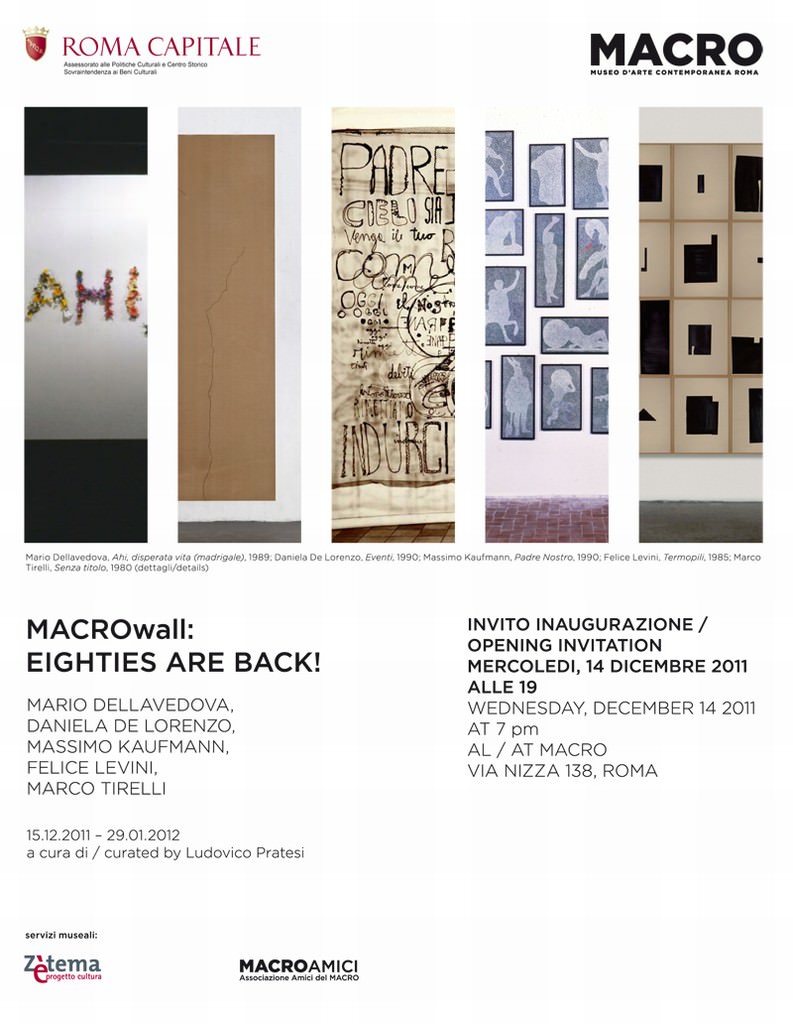 MACROwall: Eighties are Back! è un progetto, curato da Ludovico Pratesi, che si propone di rileggere l’arte italiana degli anni Ottanta attraverso un ciclo di mostre personali di artisti rappresentativi delle diverse
