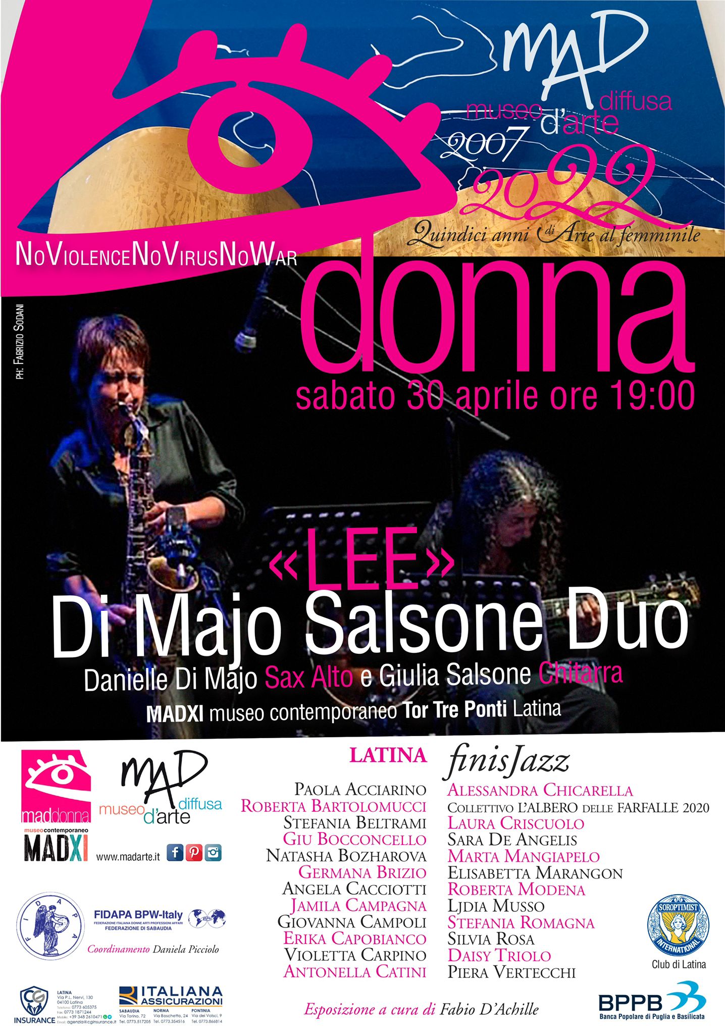 Chiusura giorno 30 aprile ore 19 con concerto di musica jazz, "Lee" Di Majo Salone Suo, con Danielle di Majo, Sax alto e Giulia Salone, Chitarra.