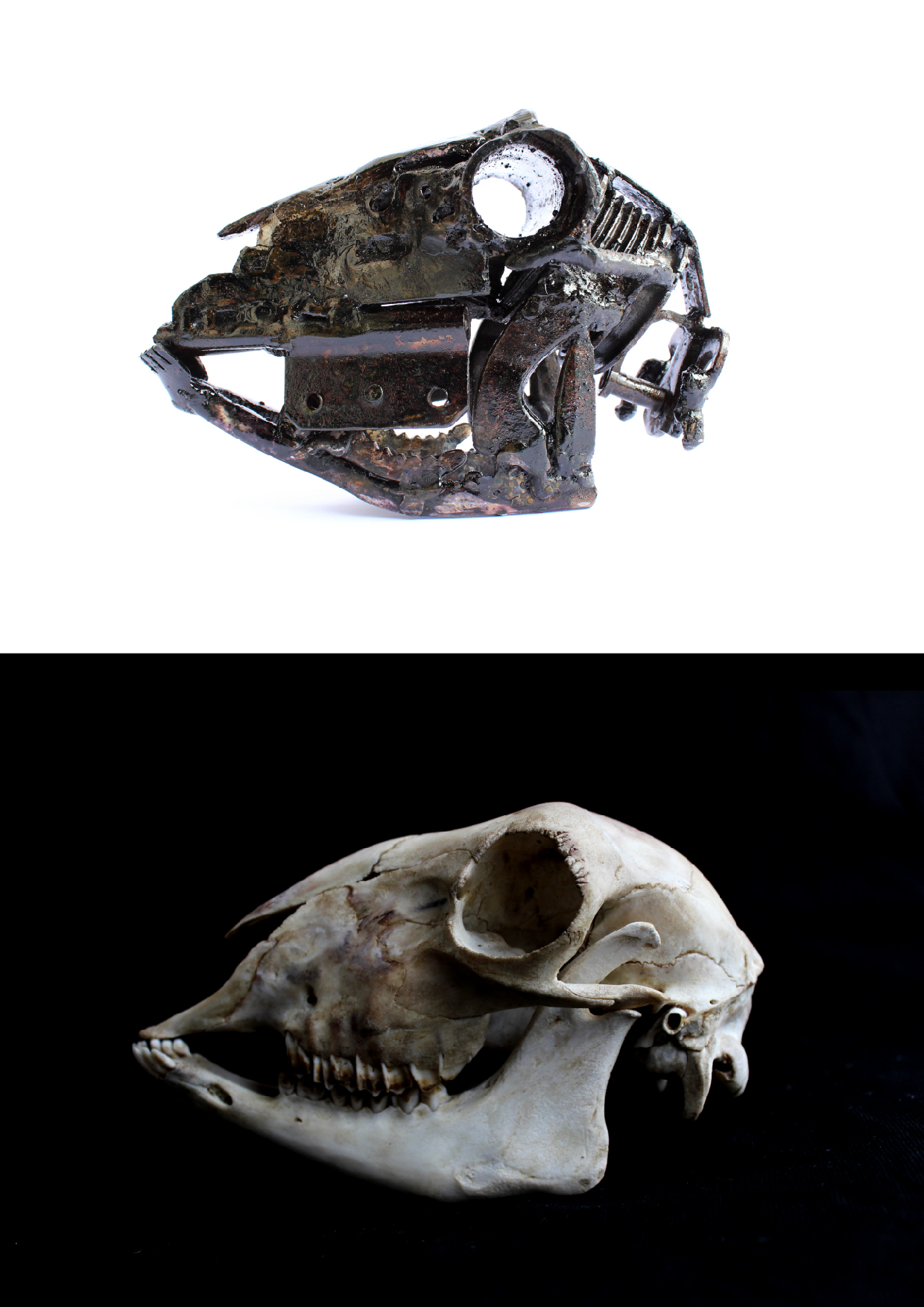 Eclettiche e surreali, mosse da un bisogno irrefrenabile di “meraviglioso”, le congerie metalliche saldate e lisciate dal genio vigoroso del giovane ecoartista si erigono a sorprendenti artefatti dove le tracce di un fare antico e di moderne fatiche trasfigurano in pensose mirabilia.