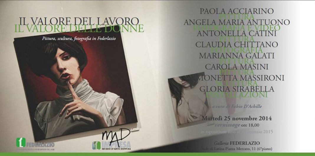 In occasione della Giornata Internazionale contro la violenza sulle donne, Mad Impresa si mobilita tingendosi di rosa: nella Galleria della Federlazio il Museo d'Arte Diffusa a cura di Fabio D'Achille presenta la collettiva delle artiste Paola Acciarino (pittura); Angela Maria Antuono (video e fotografia); Antonella Catini (pittura); Claudia Chittano (fotografia); Marianna Galati (pittura); Carola Masini (pittura); Simonetta Massironi (scultura); Maria Gloria Sirabella (installazioni).