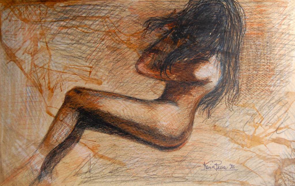Il disegno, dunque, che nel repertorio delle tecniche artistiche rappresenta il primo momento creativo nato dall’incontro tra l’idea e il supporto tattile, in cui prende vita la compiutezza dell’immagine evocata, viene “lasciato” libero da interventi materici che andrebbero a minare la purezza intrinseca di ogni elemento costruttivo e costruito. “Costruire” un corpo femminile, uno splendido corpo femminile, significa per una donna avere coscienza e conoscenza del proprio essere, degli accadimenti che ne regolano la natura impetuosa e sorprendente, è scoperta e familiarità insieme, è solidità nelle forme e imprevedibilità nei movimenti, è fermezza nei meccanismi e un continuo fluttuare nelle movenze, è unione tra il visibile e l’etereo, è superficie dorata e sconosciuto spessore.