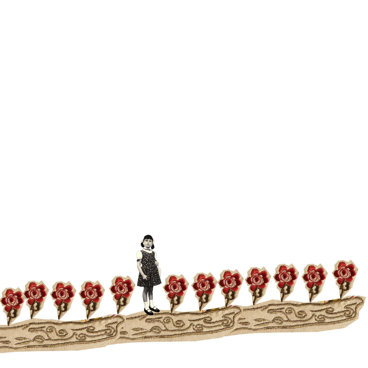 “Spesso nell’immaginario collettivo la fotografia viene associata a mera testimonianza e documentazione passiva di un momento concluso nel tempo e nello spazio. Maria Antonietta Scarpari tramite il photocollage riscatta il linguaggio fotografico da questa visione limitante per innalzarlo a strumento di espressione artistica. L’artista ha fotografato particolari di stoffe in tessuto semplice, appartenenti al tempo delle nostre nonne, li ha riassemblati creando delle composizioni con prati, fiori, farfalle e mongolfiere e vi ha sovrapposto degli scatti che la rappresentano da bambina. L’effetto provato dallo spettatore è di trovarsi al confine tra sogno e realtà, ci si muove in un mondo fiabesco, onirico, ma quale strumento, se non quello fotografico, potrebbe rendere più viva e reale una dimensione interiore, nascosta, legata al passato, il quale, grazie alla sensibilità dell’artista, viene riattualizzato? La fantasia viene così calata nella realtà, creando una metafora di quell’opera magica che è la vita”.