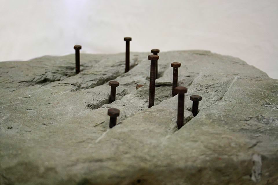 Nicola Rossini impronta la sua ricerca di una particolare venatura scientifica soprattutto rivolta allo studio dei materiali, ferro, marmo, pietra, terre e alle loro sottili interferenze ed inferenze. Fin dai primi lavori porta avanti una investigazione puntuale sui processi di ossidazione mettendone in luce i risultati dal punto di vista formale apprezzando anche le più microscopiche varianze cromatiche e tonali che registra come rapporti di forze che si contendono la materia. Rapporti quantitativi ma anche qualitativi che rimandano agli esperimenti alchemici poi soppiantati dall’avvento del pensiero scientifico ma che tuttavia sono rimasti sotto traccia fino ai nostri giorni. Appannaggio di certa farmacopea e recuperati ed esaltati dall’arte in chiave simbolista, oggi infatti ricompaiono sia nella ricerca artistica che nelle diverse branche scientifiche arresesi alla ribellione della natura di fronte a qualsiasi costrizione di riduzione formale. La natura infatti parla un’altra lingua che Nicola vuole ascoltare ed assecondare attraverso sculture ed installazioni che provocano fecondi cortocircuiti tra le materie e gli elementi primari come aria, acqua, terra e fuoco. In tal modo ne risveglia la memoria antica, i potenziali di energia alle origini di un movimento mai acquietato e sempre in fieri che alimenta il divenire della realtà nello spazio e nel tempo di cui solo l’artista può immaginare l’incalcolabile destino.