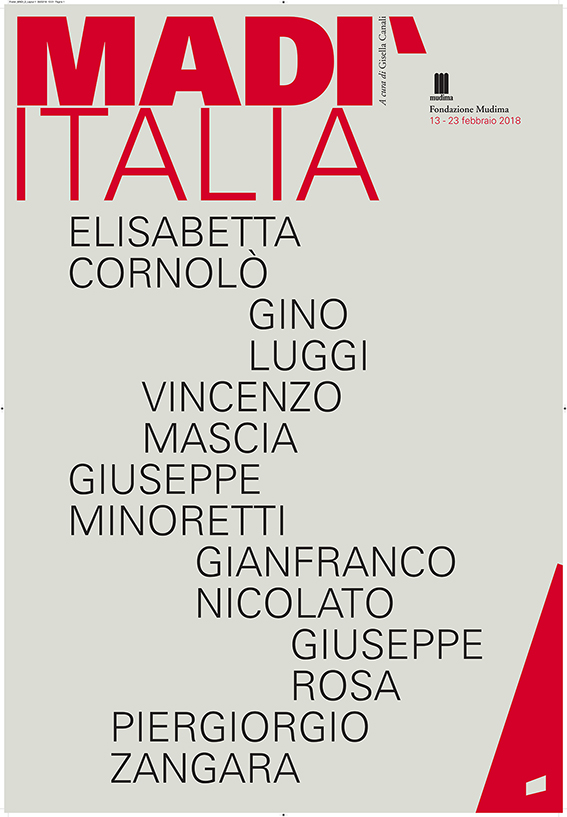 A settant’anni dalla nascita, la Fondazione Mudima ricorda il Movimento Madì, rendendo omaggio al suo sperimentalismo con una collettiva di alcuni dei nuovi protagonisti: Elisabetta Cornolò, Gino Luggi, Vincenzo Mascia, Giuseppe Minoretti, Gianfranco Nicolalato, Giuseppe Rosa e Piergiorgio Zangara.