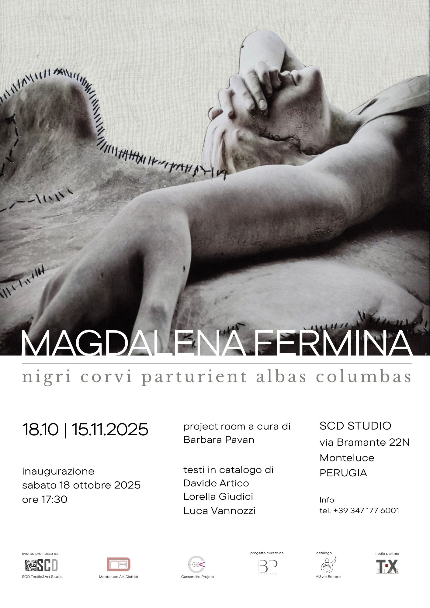 Illusione e disillusione sono i poli dialettici che percorrono da anni la ricerca di Magdalena Fermina e che convergono nelle opere di Nigri corvi parturient albas columbas, la mostra personale allestita dal 18 ottobre al 15 novembre 2025 a SCD Studio, via Bramante 22N, a Perugia, curata da Barbara Pavan.