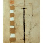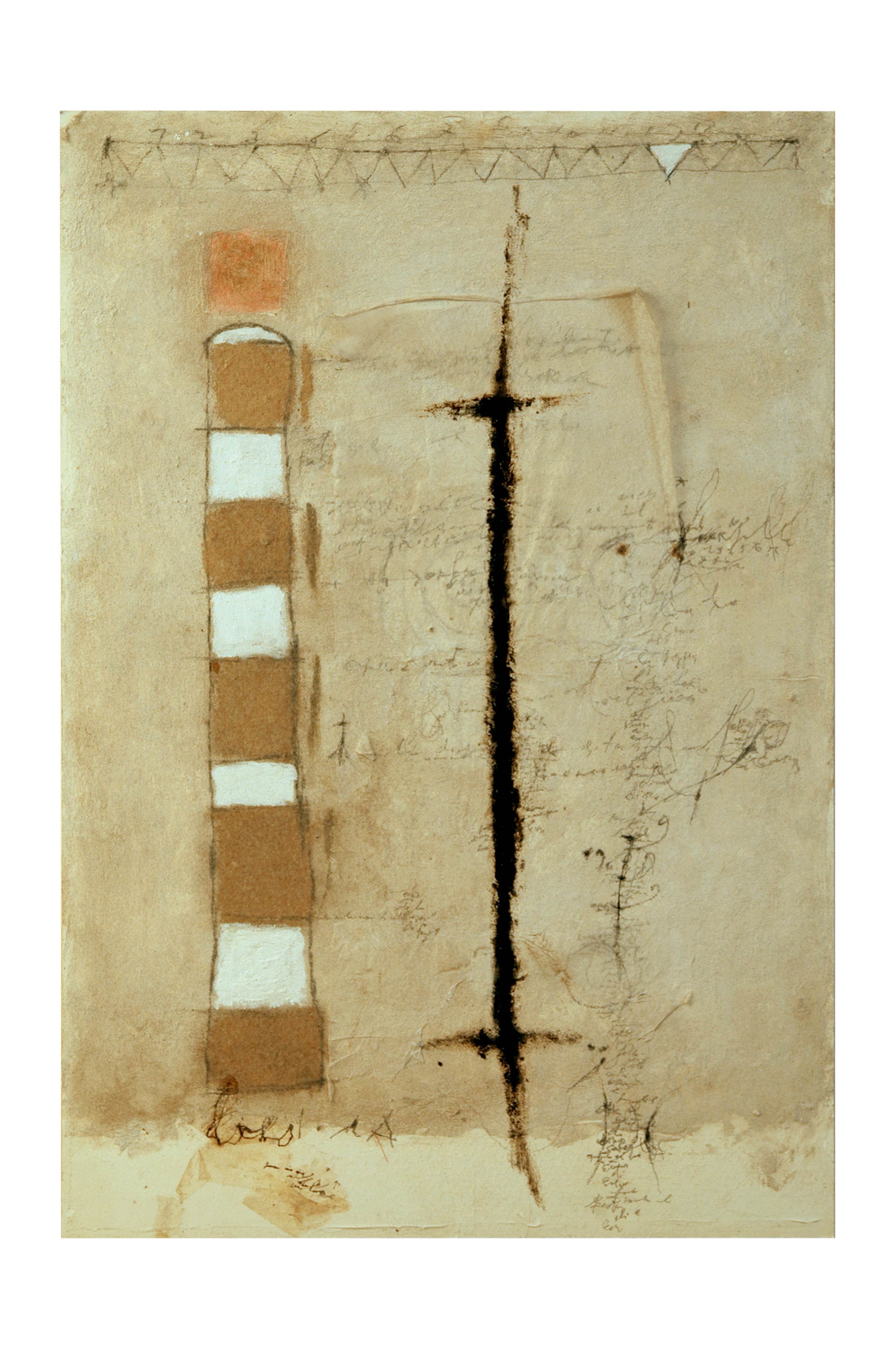 La prima delle tre mostre allestita a Palazzo Bisaccioni, sede della Fondazione Cassa di Risparmio di Jesi, e realizzata grazie alla generosità di Emma Bellavita, Carlotta e Camilla Mussio, presenta una trentina di pezzi provenienti dall’archivio privato della famiglia, molti dei quali inediti, e una grande opera della collezione Lucinato, che testimoniano i diversi filoni di ricerca che Mussio ha intrapreso nel corso della sua lunga carriera. Sono quindi presenti dipinti legati alle esperienze verbo-visive: dalle caratteristiche colonne di numeri ai pensieri, alle poesie inframmezzate da giochi grafici, simboli e disegni, dalle opere che rappresentano il tema della porta e del passaggio, così caro al maestro, fino a un ristretto, raro e prezioso nucleo di opere in cui l’azione artistica si esplicita nella definizione di uno spazio tipografico attraverso dei piccoli riquadri bianchi.