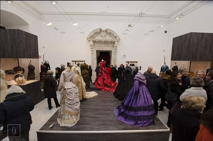A Palazzo Moncada sono esposti 150 pezzi tra abiti e accessori della collezione Piraino datati dal XVIII al XX secolo. Si tratta di capolavori che raccontano tre secoli di storia e di moda siciliana.