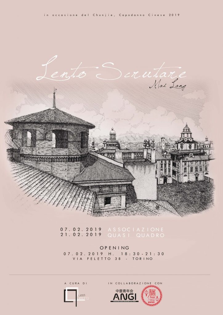 In occasione del Capodanno Cinese 2019 organizzato da Angi Torino - Associazione Nuova Generazione Italo-Cinese insieme alla Città di Torino, l’Associazione Quasi Quadro presenta la mostra Lento scrutare. Mai Lang, oltre all'esposizione nella sede di Quasi Quadro, è stato recentemente protagonista di un incontro con gli studenti presso l'Accademia Albertina delle belle Arti di Torino. Inoltre il 15 Febbraio incontrerà gli studenti del Liceo Botta di Ivrea e il 16 Febbraio inaugurerà una mostra collettiva presso il Pluriuso di Chiaverano.