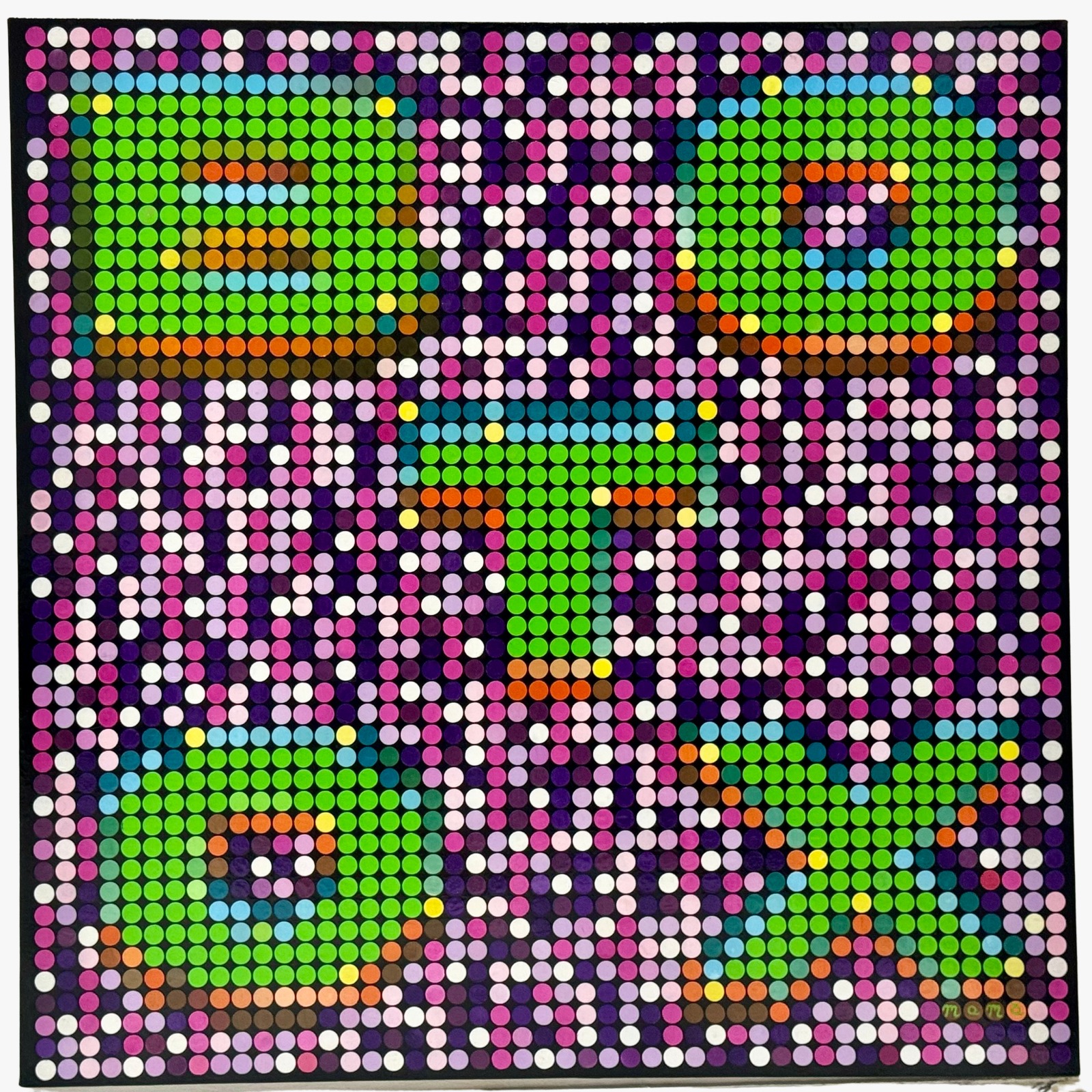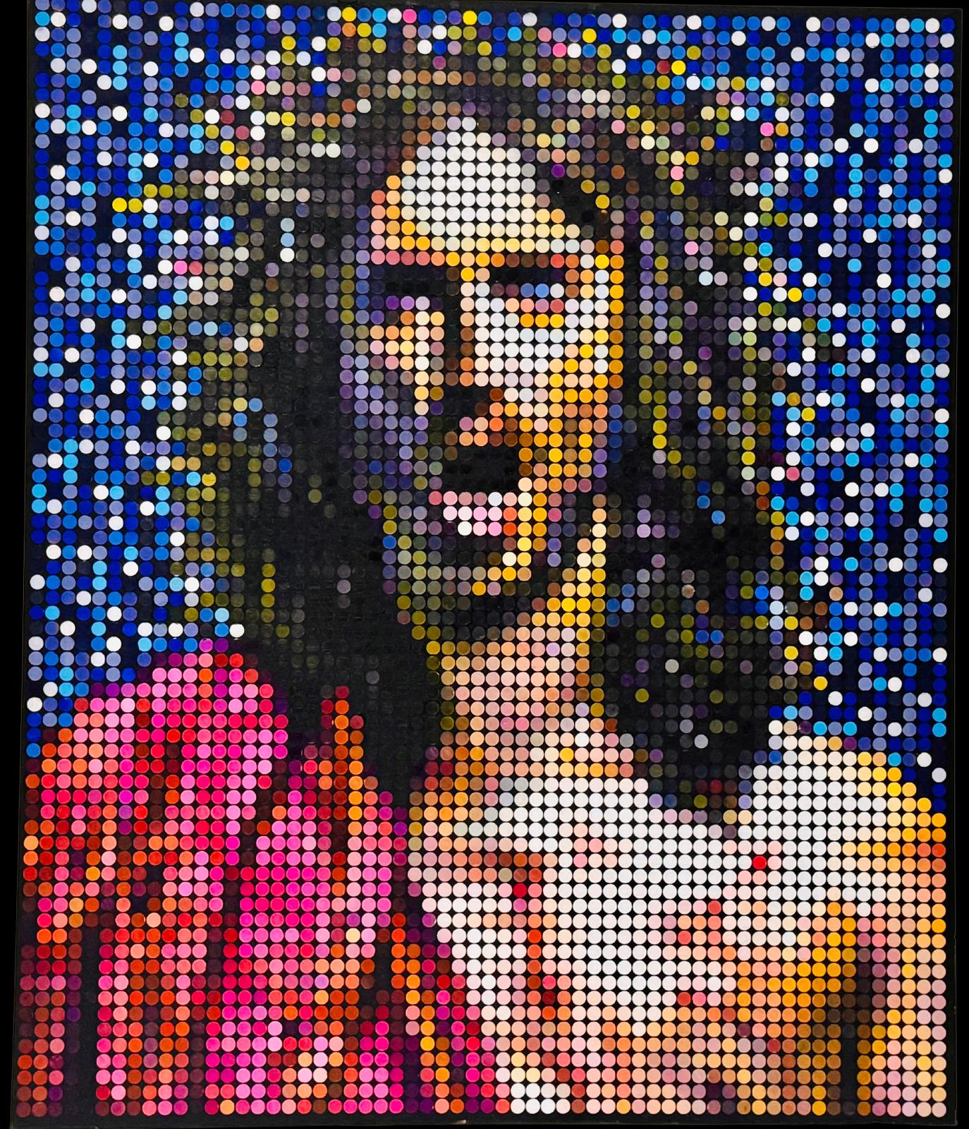 MaMà Dots, collettivo artistico italiano, è l’ideatore del Pop Pointillism, una tecnica che fonde la precisione del puntinismo classico con la modernità della pop art. Le loro opere, realizzate interamente a mano con colori ad olio, evocano l’estetica digitale, offrendo al contempo una riflessione sulla condizione umana nell’epoca dell’intelligenza artificiale.