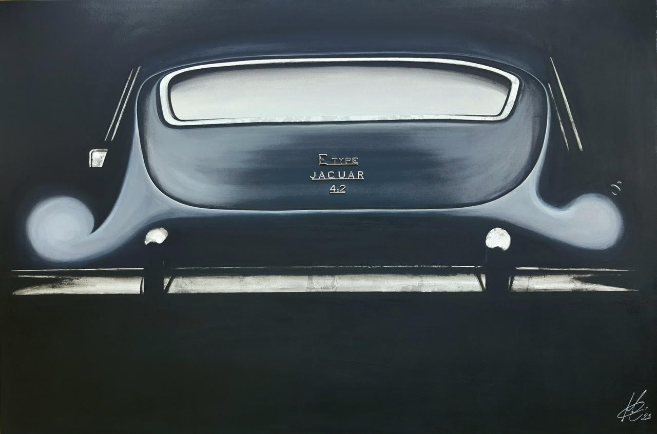 Monica Casali, realizza in acrilico, resina, foglia d’argento e pezzi originali d’epoca, la sua “Jaguar” E Type, l’iconica auto guidata da Diabolik e definita da Enzo Ferrari la vettura più bella del mondo.