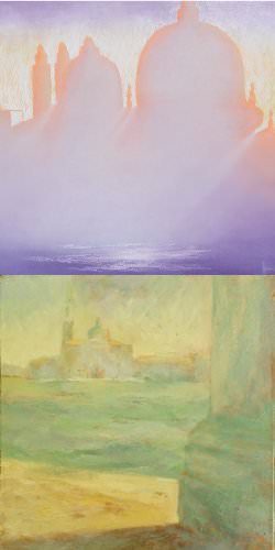 oltre 60 opere tra dipinti ad olio e tecnica mista ma anche sculture in terracotta e legno “spiaggiato”, trasmettono con rarefatte atmosfere il grande amore per Venezia.