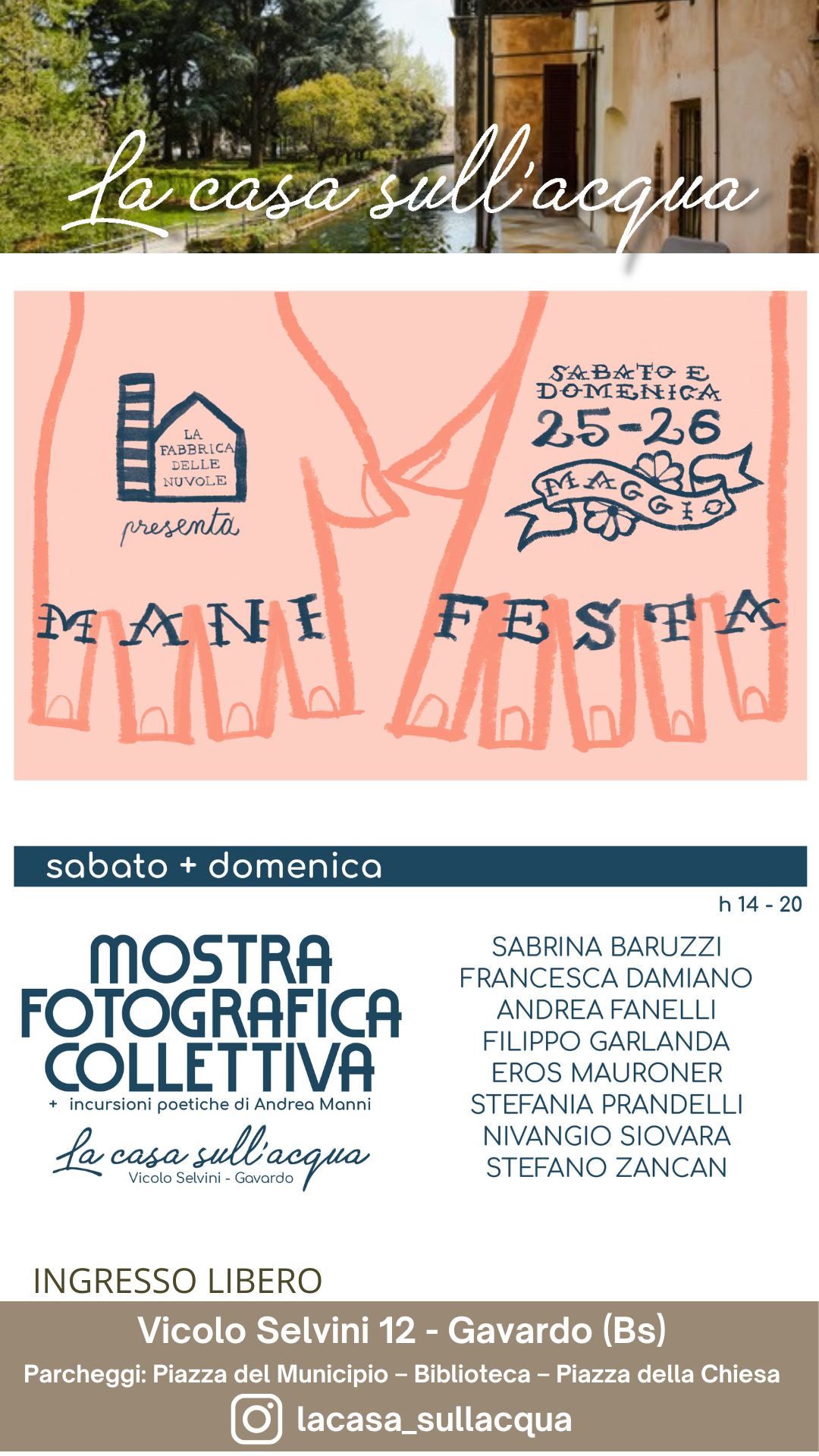 La Casa sull’acqua di Gavardo ospita “MANI FESTA” mostra fotografica collettiva organizzata dall’associazione La Fabbrica delle Nuvole.
