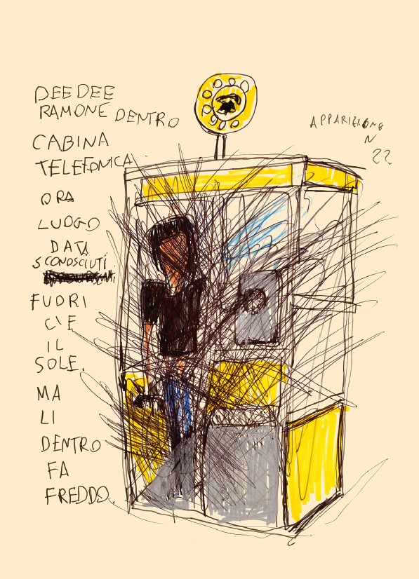 Personale dell’artista Manuel Cossu dedicata alla figura di Dee Dee Ramone, inteso come un santo punk: la mostra si ricollega al libro di Cossu, Dee Dee Ramone. Apparizioni, appena pubblicato da Andante Books.