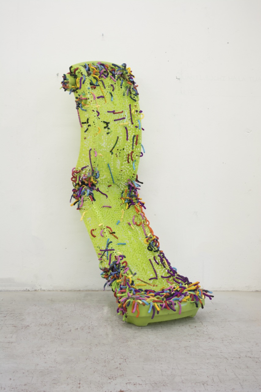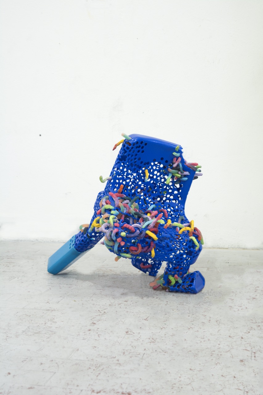 Può sembrare anacronistico presentare una mostra dal titolo LETARGO alla soglia dell'estate, ma Manuel sente l’impellente bisogno di lanciare un monito, di destarci dalla sonnolenza, e ha deciso di farlo nella maniera più provocatoria e controversa possibile, usando con sarcasmo il nonsense: scivoli e sedioline della Chicco traforati fino al collasso, la cui immagine trasfigurata quasi ci infastidisce, e ancora fotografie che ritraggono un personalissimo inventario di oggetti dal gusto kitsch e di fatto inutili, che porterebbe con sé nel caso di una situazione post-apocalittica, che interagiscono con una misteriosa creatura femminina di panna. Oggetti che sono stati esautorati dal loro usuale ruolo nel mondo, e che la loro presenza in qualche modo ci angoscia.