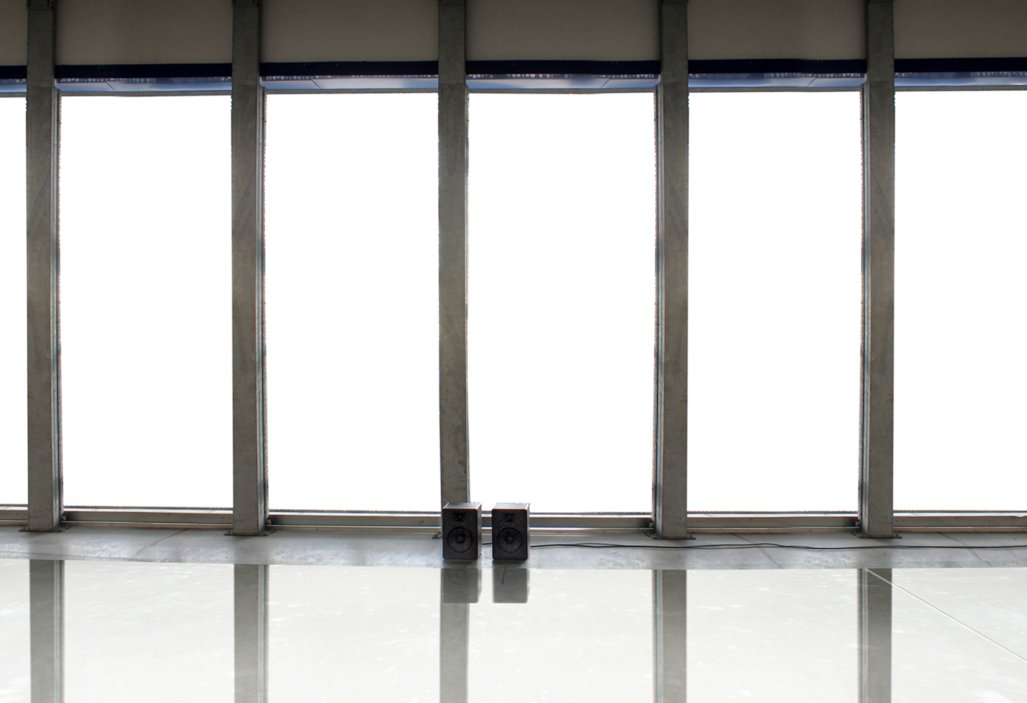Spazio ORR presenta Bring to the ground, la quarta personale di Manuel Fois. La grande superficie specchiante, posta sul suolo, divide idealmente lo spazio in due sezioni; due coppie di amplificatori diffondono, restituendo, all’interno del luogo, suoni e rumori nella stanza stessa