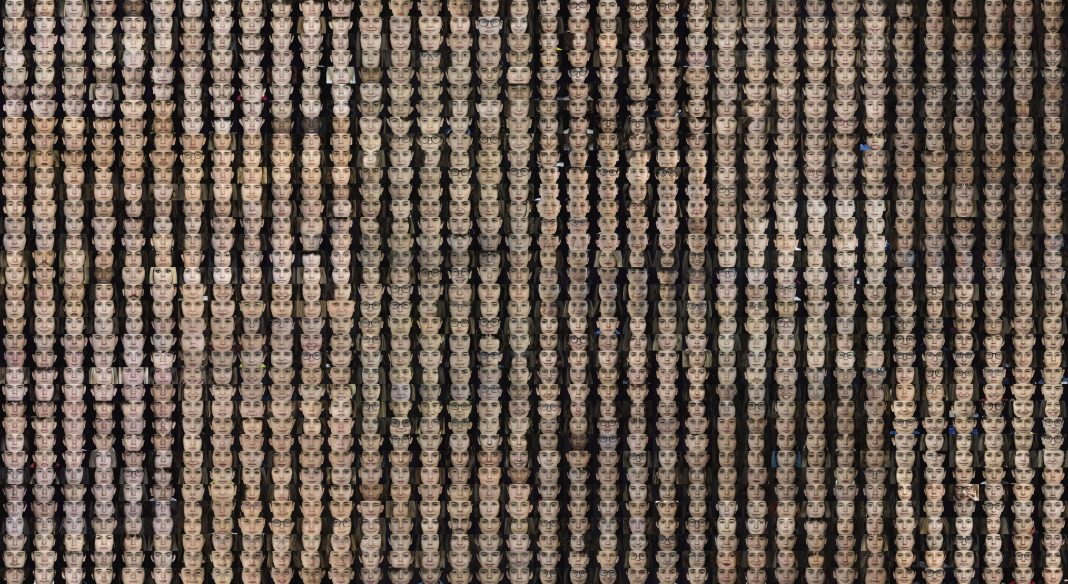 Al piano terra la Sala 2030 introduce otto stendardi di grandi dimensioni, in acetato trasparente, su cui sono state impaginate, in una successione senza soluzione di continuità, le foto a 16:9 di 2000 volti a occhi aperti, che non tradiscono alcuna emozione o segno volitivo: sono sguardi fissi in camera, seri ma spontanei, non ammaestrati dagli adulti, che richiamano lo sguardo severo dell’attivista Greta Thunberg quando ha lanciato ai potenti della terra il suo j'accuse “We'll be watching you” (vi teniamo d’occhio). Sono sguardi che scrutano e osservano lo spettatore per spingerlo a riflettere sulla necessità di agire per il futuro suo e di tutti.