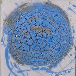 La matrice della passione è il primo ciclo e costruisce la sua cosmogonia attorno al rosso della fiamma: il grande cuore è un occhio vigile e pulsante che attrae a sé i piccoli satelliti in una alleanza di vita. Torna in ognuno dei cicli il dialogo tra elementi e forme, tra pieno e vuoto, essere e non essere. Lo scambio tra visibile e invisibile, che ispira dichiaratamente il secondo ciclo, è lo spazio salvato per la creazione, è La dimensione del rito, restituito alla vertigine del cielo. L’azzurro ci introduce alla sacralità perduta e da riconquistare, in un cammino di silenziosa interrogazione di sé e del proprio tempo. Il rito, però, va vissuto nello spazio comunitario, non nell’isolamento delle proprie ragioni; è liberazione di energia, è catarsi, ma solo in quanto ascesi, askesis: un esercizio instancabile e affilato, come quello che l’artista pratica nel suo dialogo con la materia e il colore.