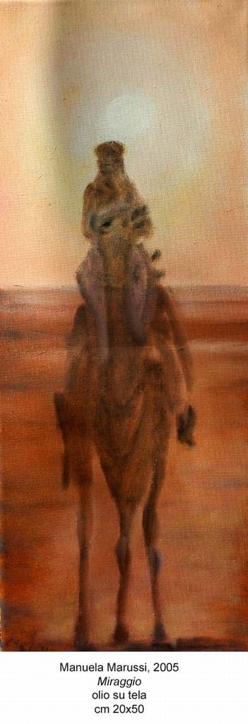 Per Marussi la pittura, condotta negli anni con crescente maestria, risulta un mezzo per esprimere le proprie riflessioni, la sensibilità e i delicati sentimenti che la animano, attraverso una sorta di abbraccio virtuale che coinvolge – con amore – tutte le genti del mondo. Incontriamo, tra i protagonisti delle sue opere, rappresentati con vesti sgargianti e significative, esaltati da sapienti velature, esseri umani appartenenti alle più varie etnie: dagli indiani d’America alle popolazioni che abitano il deserto, alle donne africane, riccamente acconciate e adornate. Ma protagonista di questo abbraccio virtuale è anche la natura rigogliosa della foresta o quella fascinosa ed essenziale del deserto. E sullo sfondo compare talvolta anche una cascata di stelle, che avvolge i personaggi assorti e simbolici della Marussi, come in un unico grande autoritratto interiore.