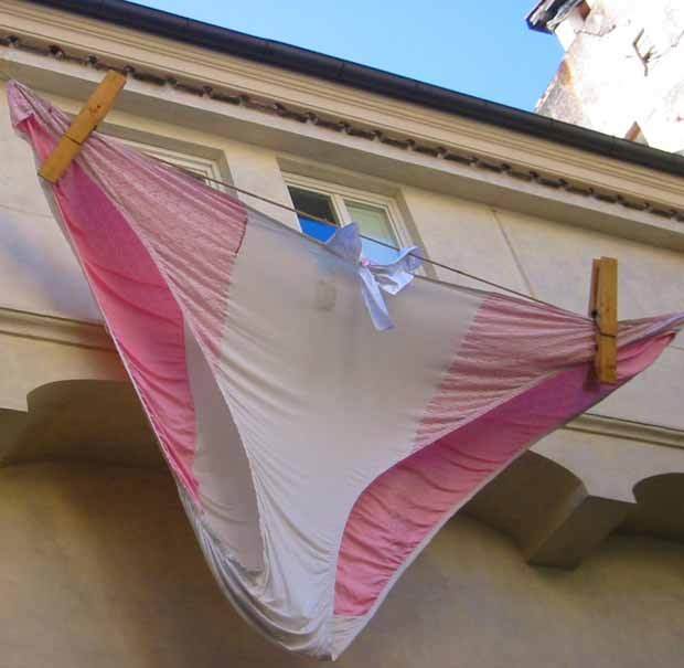 La mostra si profila come un ulteriore passo nella ricerca dell’alter ego dell’artista, la Gigantessa, attraverso la raccolta di veri e propri indizi che ci permettano di ricostruire la sua storia e sapere cosa le è accaduto. L’ingresso della galleria è segnato come la scena di un delitto: la prima cosa visibile dallo spettatore è la sagoma di un cadavere sproporzionato a terra. A chi appartiene il corpo? Nuovi indizi si possono forse trovare vedendo il video: la figura malinconica e sfuggente di quella che intuiamo essere la Gigantessa, dispersa, vera identità perduta, invia messaggi di aiuto. Le sue enormi labbra e i lunghi capelli chiari ci danno la sensazione di qualcosa di anomalo, con una corporeità troppo lontana dalla “norma”. Nella piazza antistante la galleria, sventolano delle enormi mutande di pizzo bianche e rosa: è evidente che qualcuno le ha abbandonate, le ha inavvertitamente dimenticate. Gli abiti di una persona spesso ne testimoniano e svelano il carattere, le attitudini: un altro inquietante elemento sulla vita della Gigantessa. Questa in verità rimane sconosciuta, non sappiamo chi sia, pensiamo che qualcosa di terribile debba esserle successo, ma non sappiamo cosa precisamente. Tutto rende conto del fatto che la Gigantessa era presente e improvvisamente è scomparsa, forse per sempre. Le dimensioni abnormi di ciò che appartiene alla Gigantessa (come, in esposizioni passate, peluches monumentali), anche se sembrano indizi che ci aiutano a ricostruire la sua storia, ci fanno comprendere quanto sia distante da noi e irraggiungibile, come tutti in realtà rimaniamo sempre per il prossimo. E la sensazione che la Gigantessa sfugga a noi come a se stessa è inevitabile.