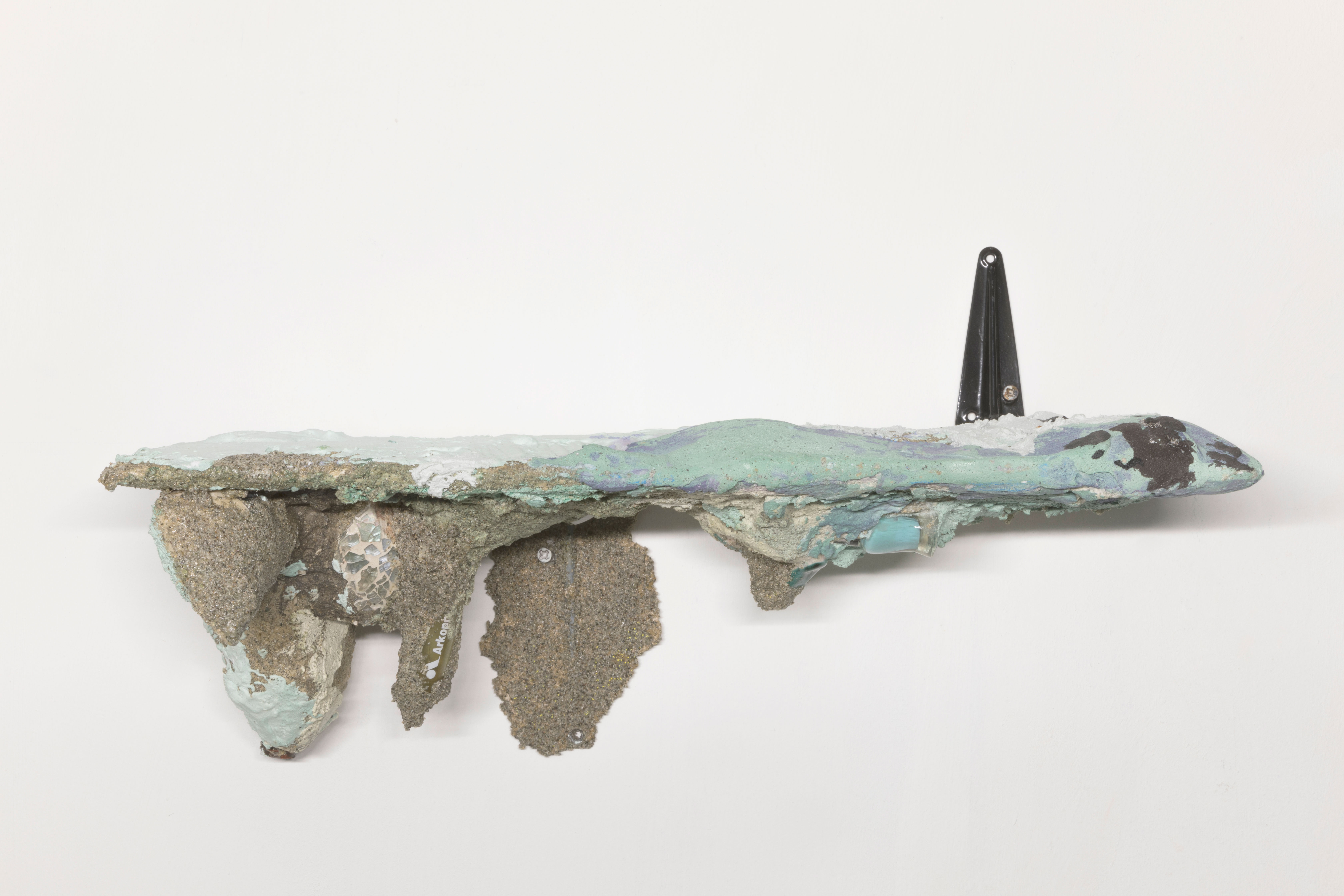 Ferreri realizza un’installazione in cui 24 sculture a forma di mensola, perdono la consueta funzione di contenere oggetti per sostenere unicamente il proprio immaginario. Una tela ad olio di Cerutti abita lo spazio e si e si interroga sul rapporto asimmetrico dell’Io con il proprio sé.