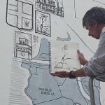 Una curiosità: l’artista ho volutamente deciso di usare il bianco e nero, come scelta stilistica legata alla relativa giovinezza del territorio e per l’affinità con il taccuino, che gli è servito per abbozzare i dettagli di un territorio che può offrire importanti suggestioni e nuove visioni, sia ai nativi che agli estranei.