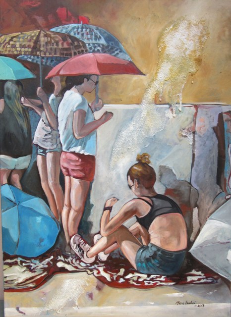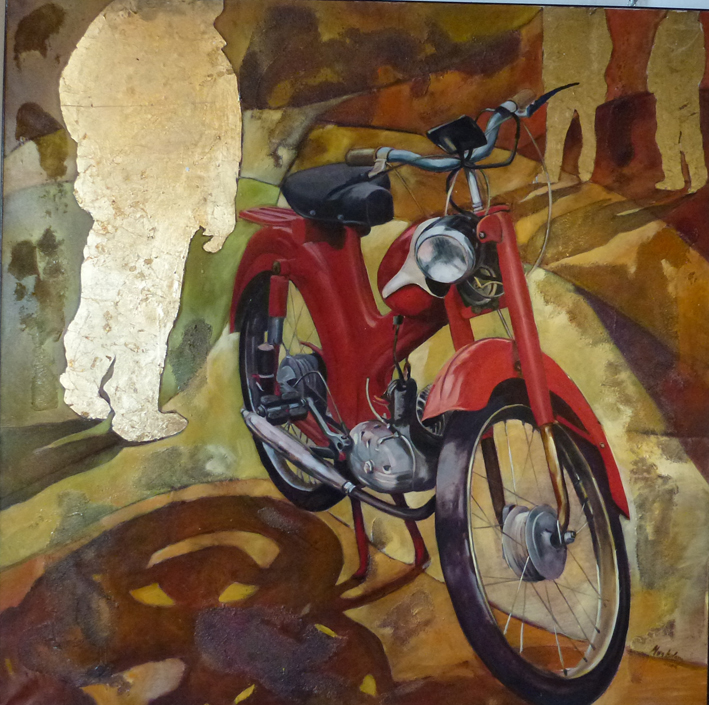 Una serie di dipinti a olio, acrilico e inserti materici, per immergere il visitatore in un mondo di viaggiatori della vita, in uno spazio dove tutto è immaginabile, dove “l’homo peregrinus” avanza alla ricerca dei suoi sogni e di se stesso, dove le auto assorbono viaggi e paesaggi sulle loro lucide superfici, dove alla fine i turisti a gruppi o da soli diventano i loro alter ego, calchi dorati, impronte d’uomo, sintesi di una società massimizzata dove gusti e tendenze sono sempre più simili fra loro.