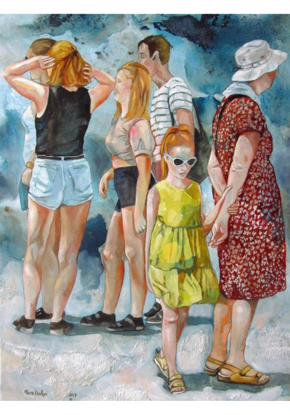In questa mostra di Mara Isolani sono esposti dipinti a olio, acrilico e inserti materici, per immergere il visitatore in un mondo di viaggiatori della vita, in uno spazio dove tutto è immaginabile, dove “l’homo peregrinus” avanza alla ricerca dei suoi sogni e di se stesso, dove le auto assorbono viaggi e paesaggi sulle loro lucide superfici, dove alla fine i turisti a gruppi o da soli diventano i loro alter ego, calchi dorati, impronte d’uomo, sintesi di una società massimizzata dove gusti e tendenze sono sempre più simili fra loro.