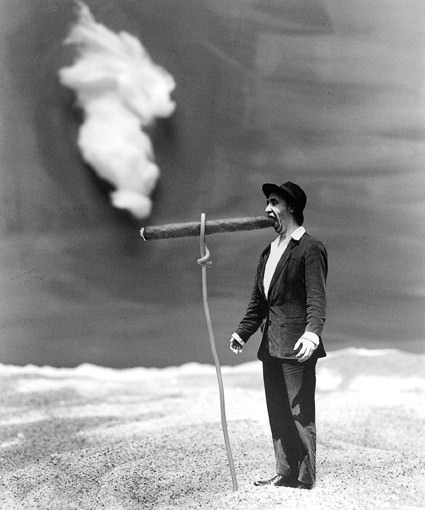 …….”Molto spesso la fotografia è una testimonianza del reale, ma, a volte, ne è una sorta di decalcomania che si afferma bloccando il movimento, sospendendo il tempo; è il reame dell’evidenza, a meno che, per maldestria o per ottenere un effetto flou a fini artistici il fotografo non abbia mosso la sua macchina ... Mai, io credo, Le Mené ha accettato di lasciarsi imprigionare da regole troppo rigide per la sua sensibilità. Che si serva di una architettura romana, della curva delle spalle di una donna o di una immagine che “fabbrica” in studio a partire da quasi nulla, sempre, mi sembra, da Hebdomero ai suoi Uomini con cappello, Marc utilizza il mezzo fotografico, non per esplorare la realtà che lo circonda - e probabilmente lo annoia - ma esattamente come farebbe un pittore (Magritte per esempio) con forme e colori, per elaborare un mondo, il suo mondo, all’opposto del nostro; in breve un universo mentale che mi piace immaginare fluttuante nel cielo tra navicelle spaziali che ci portano con lui verso la via lattea, verso le galassie lontane dell’immaginario puro.” (dal testo di Jean-Marie Drot)