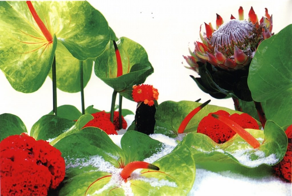 Per realizzarli si è procurato tre tipi di neve differenti per creare un paesaggio innevato con fiori speciali e ricercati: con questi ha creato un giardino d’inverno, “Winter Garden”.