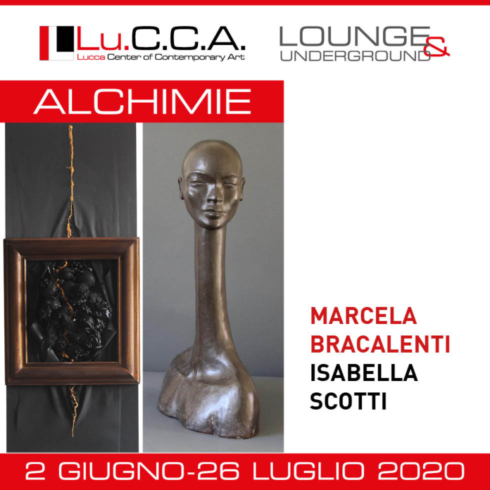 La materia che si trasforma, si contamina e diviene pretesto per riflessioni sulle cose umane e sul sovrannaturale. Marcela Bracalenti e Isabella Scotti si divertono a giocare con il proprio mezzo espressivo dando vita l’una a quadri-installazioni e l’altra a sculture che nascono dalla commistione dei materiali più diversi. I loro lavori producono “Alchimie”, come il titolo della loro mostra collettiva esposta nel Lu.C.C.A Lounge & Underground