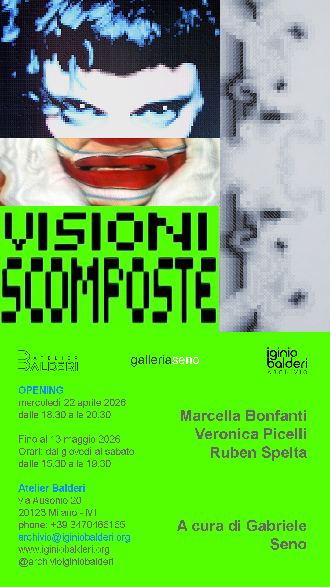 In occasione della Design Week milanese, contesto privilegiato di sperimentazione e contaminazione tra linguaggi creativi, mercoledì 22 aprile si apre al pubblico alle ore 18.30, presso l’Atelier Balderi di Milano in via Ausonio 20, la mostra collettiva di Marcella Bonfanti, Veronica Picelli e Ruben Spelta “VISIONI SCOMPOSTE”, esposizione a cura di Gabriele Seno.