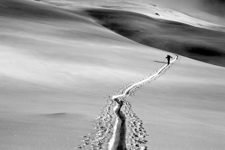 Questo lavoro è ovviamente giocato sul fatto che la montagna invernale non offre elevati cromatismi ma spettacolari giochi di luci e ombre che, perciò, rendono l'uso del bianco e nero perfetto per esprimere le sensazioni che si provano vivendola.