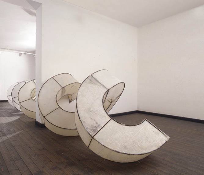 La mostra “CAPTIVUS” di Marcello Mondazzi, artista presente dagli anni Ottanta in numerose esposizioni italiane e straniere in gallerie pubbliche e private, presenta opere recenti dello scultore, di grande e medio formato che si inseriscono in un dialogo particolarmente suggestivo con gli spazi architettonici dell’ex Casa di Correzione realizzata nel Settecento da Carlo Fontana, e con la memoria del luogo. Si tratta di sculture in metacrilato combusto, ferro, plastiche. Strutture apparentemente semplici nella loro purezza formale, cariche tuttavia di innumerevoli riferimenti culturali, simbolici, antropologici. Incentrato sull’elaborazione materica, sulla trasparenza e sulla ricerca di forme frammentarie e incomplete che si definiscono attraverso la penetrazione della luce, il lavoro di Marcello Mondazzi si presenta come sovrapposizione di diafane suggestioni. Simulacri e sindoni di un mondo sacrale primario le sculture si rivelano utensili arcani, reperti artistici ricomposti, tracce di oggetti usuali, pezzi di canne, prismi assemblati, piattini o ciotole contorte o bruciate. Nell’unità di senso che scaturisce dalla sintesi tra le possibilità espressive della materia e il significato inscritto nel simbolismo delle forme, risiede l’interesse precipuo dell’opera dell’artista. Grazie al sapiente uso della materia le sculture appaiono infatti come rivelazioni, apparizioni che emergono da un mondo lontano, per comunicarci il loro messaggio, rivelandoci quanto di più profondo si cela nella vita dell’uomo.