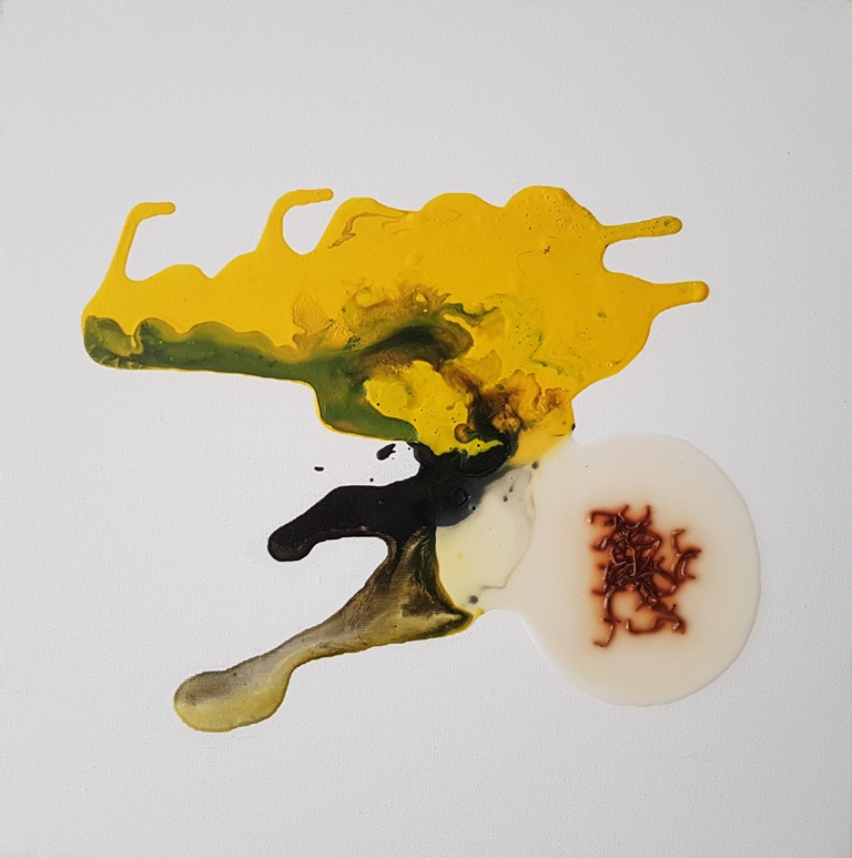 Nelle tre opere centrali, Senza Titolo, Diade e Dicotomia in giallo, l’artista non attiva una memoria passiva ma, attraverso un dispositivo simile a quello del test di Rorschach, fa emergere una memoria che costruisce, seleziona, trasforma, che apre la continuità del futuro(cit. U. Galimberti); ogni immagine innesca, così, l’insieme delle diverse memorie, semantica, episodica, visiva, procedurale, verbale e autobiografica, che fa di noi un ricordo incarnato (cit. M. A. Brandimonte); fissa punti di riferimento spaziali e temporali che permettono di confrontare i ricordi, generare una memoria collettiva ed un'identità che diventa tale in base all’esperienza vissuta e ricordata. Emerse da elaborate transizioni geografiche di figurazioni complementari, le opere in mostra, di medie dimensioni,inducono alla ricerca minuziosa di pluralità di significati distinti, mediati dalla propria personale auto-rappresentazione, e alla possibilità di fermarsi e indugiare in distanze trasversali o inoltrarsi in simultanee superfici, in indeterminati luoghi di appartenenza che possiedono alternativamente le essenze della leggerezza, della rapidità, dell’esattezza, della visibilità, della molteplicità. Nellaserie di opere del ciclo Socks, con un procedimento di significazione e di costruzione di mappe di tempi e memorie, l’artista esplora la leggerezza ludica di oggetti, colori e segni attraverso fotogrammi di stralci di ricordi: il gadget “calzino” della compagnia aerea diventa, così, attivatore di paesaggi mnemonici, spontanei ed imprevedibili, che fondono le stanze assenti della nostra infanzia con le presenze impregnate del presente. [...].” (dal testo critico di Roberta Melasecca)