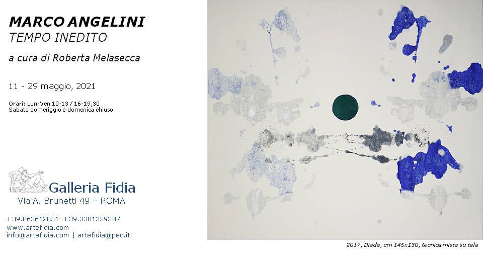 Il giorno 11 maggio 2021 dalle ore 16.00 la Galleria Fidia presenta la mostra personale Tempo inedito di Marco Angelini a cura di Roberta Melasecca. L’artista espone un corpus di opere realizzate tra il 2015 e il 2019, molte delle quali mai mostrate al pubblico italiano.