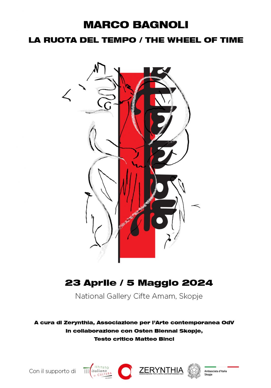 The Wheel of Time è la mostra monografica di Marco Bagnoli (Empoli, Italia, 1949) che riunisce opere dell’artista degli ultimi 35 anni e nuove produzioni site-specific presso lo storico Čifte Hammam di Skopje. Oggi sede della National Gallery of Macedonia, l’hammam è stato eretto a metà del XV secolo seguendo le forme dell'architettura islamica ed è stato utilizzato nel corso dei secoli da islamici, ebrei e cattolici, divenendo un luogo di sincretismo culturale e religioso.