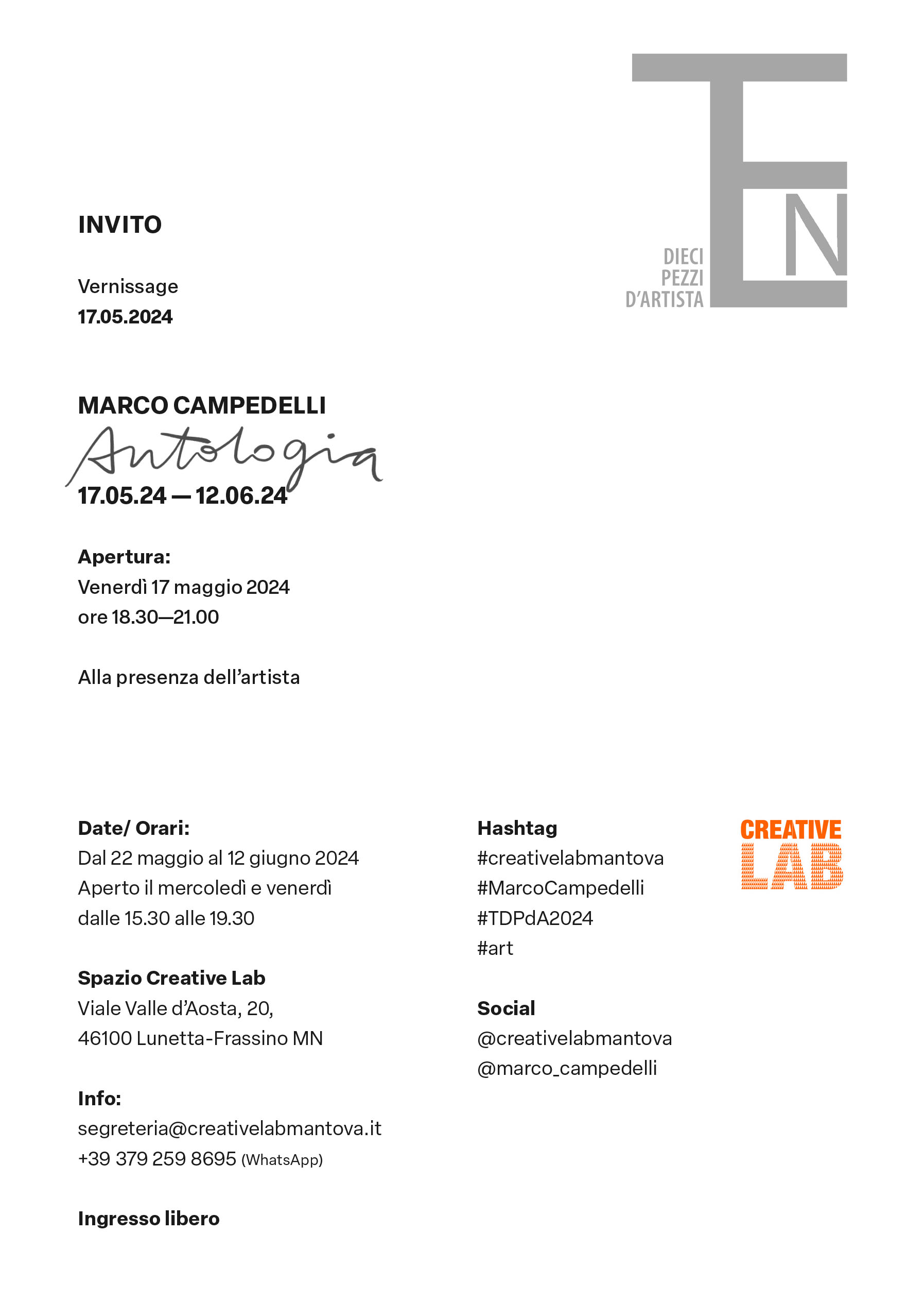 Personale dell’artista calligrafo Marco Campedelli. Espone dieci opere dal 2018 al 2024. Opere su carta, tela, ceramica: tra scritture asemiche, segni e materia.