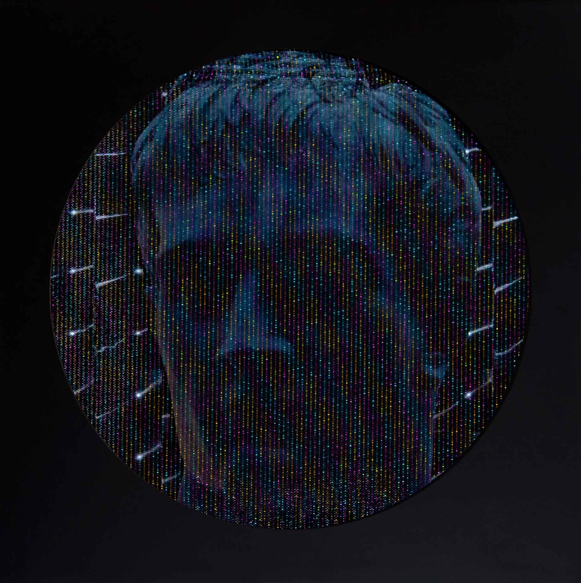 L’artista presenta una selezione di opere recenti, composta dal libro d’artista “Pygmalion” e dalla serie “Heathen”, tecniche miste su custodie di vinili, formate da assemblaggi di stampe, pittura, tessuti e materiali plastici dalle proprietà cangianti e riflettenti.