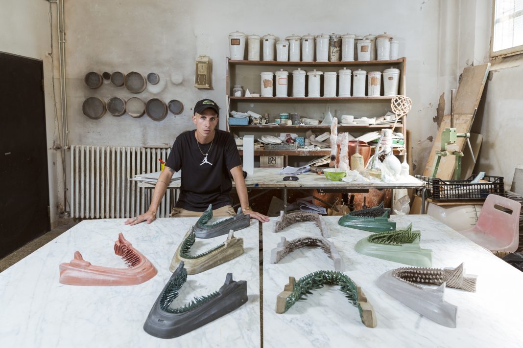 All'interno della Sala dei forni SLAG dialogherà con l'opera LACOSTE, una grande scultura in ceramica, che emulsiona scenari urbani ad immaginari primordiali e selvaggi.