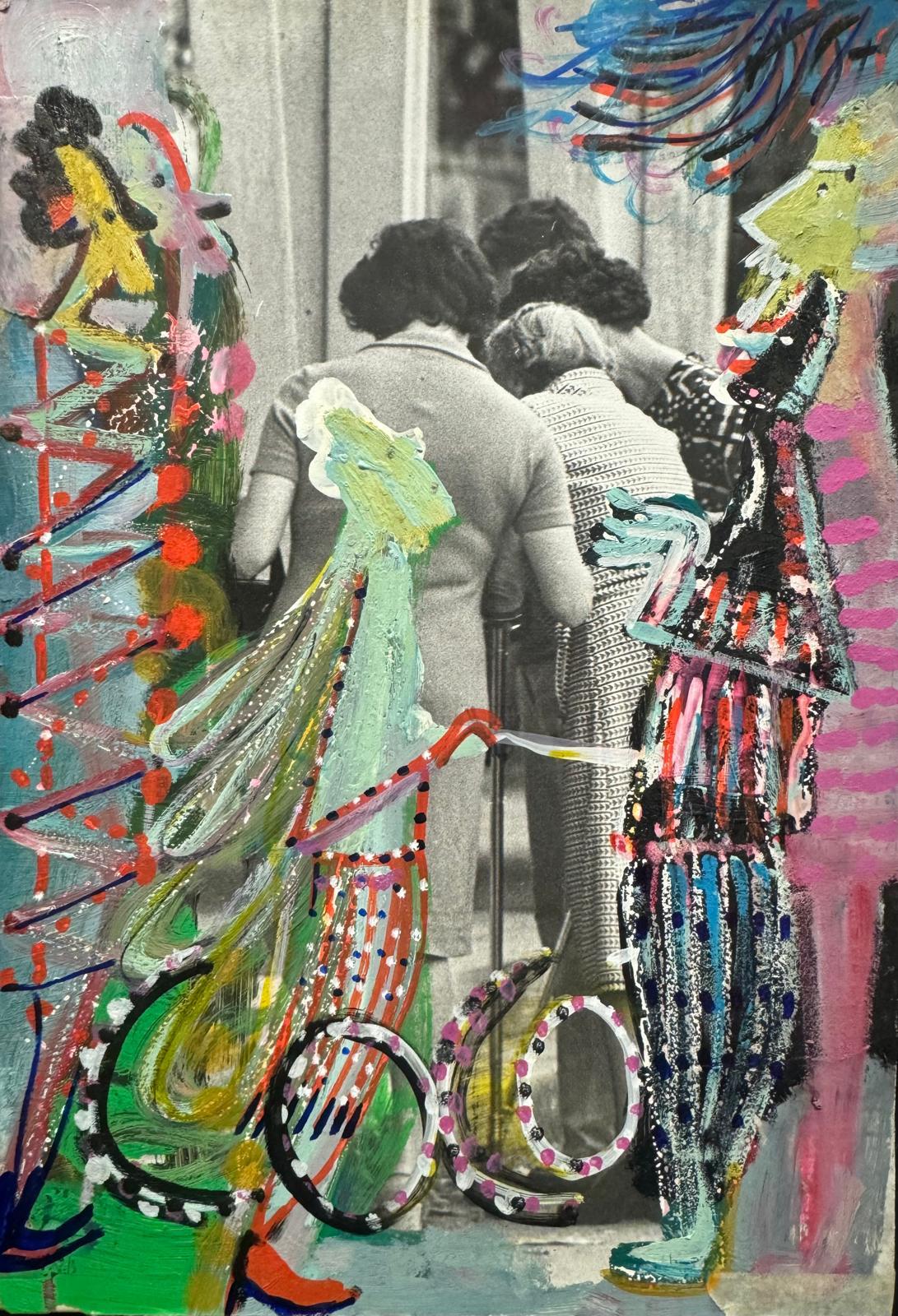 L’artista Marco Cingolani si traveste da fotoreporter e traccia su foto vintage i suoi segni e i suoi personaggi, immergendosi nella scena modificandola con ironia e “gioia di vivere”.