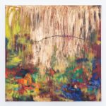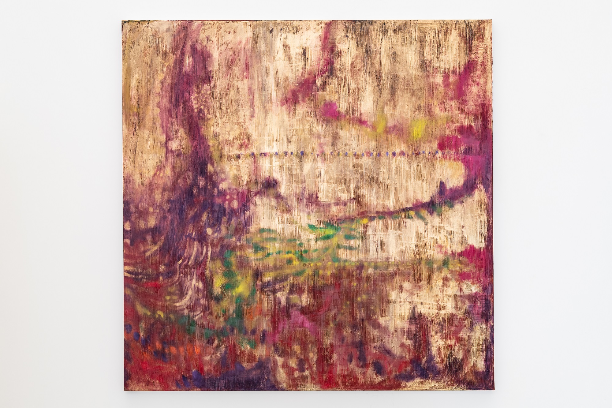 In questa nuova serie in mostra, invece, non c’è traccia di società, di comunicazione mediatica, nessuna metafora né pareidolia, bensì semplicemente la scabrosità di una superficie quasi interamente dorata che ospita una fitta trama di sovrapposizioni, permettendo l’affioramento di segni, macchie, punti, ombre, brandelli, schiacciamenti. Lo spazio della tela diventa il luogo della trasformazione della materia, un crogiolo fisico nel quale il corpo dell’artista, diviene il tramite della celebrazione dell’atto artistico, un’alchimia senza scopo e senza giustificazione sociale, se non la creazione dell’arte stessa. Il pittore si è qui prolungato nei suoi strumenti; oltre a pennelli e colori, spazzole di ferro, forchette, stracci assorbenti, coltelli seghettati usati per sovrapporre e sottrarre, fino a quando l’opera si impone nella sua chiarezza e luminosità.
