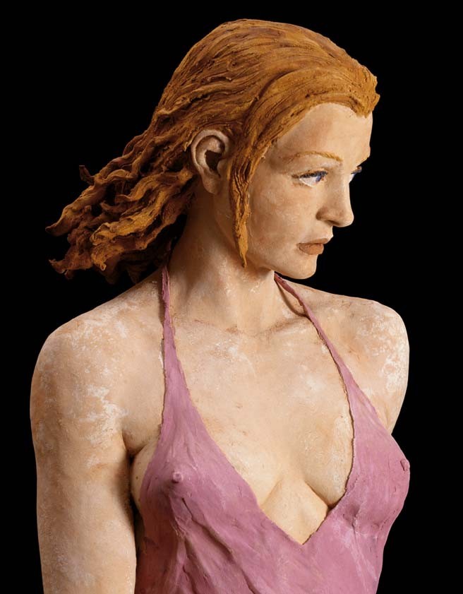 Marco Cornini è nato a Milano nel 1966, esordendo nel 1988. Nel tempo è andato affermando valori inusuali di un racconto scultoreo che sa ben miscelare attualità ad antiche e nobili lezioni. La sua «magnifica ossessione» femminile è canto e controcanto a un tempo di un’indagine amorosa ormai rara – almeno nell’arte italiana, così aliena da compromissioni personalistiche. Per la mostra attuale, intitolata sinteticamente e inevitabilmente Donne, Marco Cornini ha realizzato appositamente un ciclo di sculture che confermano e aumentano la positività del giudizio sulla maturità ormai raggiunta. La cromia delle sue sculture, proveniente da pigmenti miscelati in fase di realizzazione, si è andata accentuando – osando effetti acuti, ma pur sempre di calda bellezza. L’audacia del racconto, poi, è esemplificata dall’opera L’auto rossa (in cui una coppia nuda è colta in «crimini d’amore»), vera sottolineatura del voyeurismo, metafora dell’atto «osceno» dell’appassionato d’arte – il guardare.