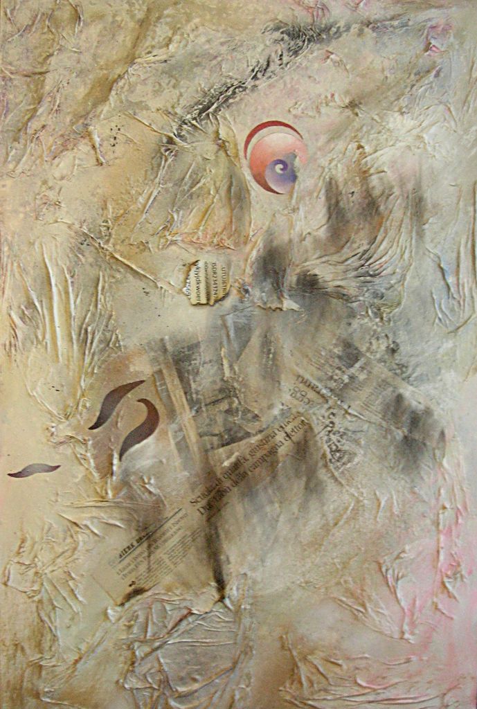 Così la figurazione degli anni settanta e ottanta è stata gradualmente sostituita da una ricerca estetica più serrata e problematica che vuole essere non solo ponderata riflessione sul caos primordiale, ma anche e soprattutto sforzo creativo e fantastico per dirigerlo e governarlo. Pittura, dunque, che si fa magma, materia, elemento nucleare ed energetico che muove e prende vita dal tempo e dallo spazio, ma che si amplia poi alle più urgenti e sentite problematiche sociali dei nostri giorni: l’alienazione, il disastro ecologico, la solitudine, la comunicazione, l’omologazione del pensiero ecc. Affascinato dall'arte e dai suoi linguaggi, ha sempre proceduto, e ancora procede, con metodo e rigore quasi scientifici concentrandosi, di mano in mano, su argomenti e tematiche specifiche che analizza con profonda attenzione e spirito indagatore. Prende vita, in questo modo, un'espressione intensa e personale, un mondo complesso e variegato dove il colore si unisce a cose, oggetti e materiali facendosi forma e percorso, pensiero e fantasia, calando tutto quanto in atmosfere raffinate, delicate e sospese, al di fuori del tempo e dello spazio.