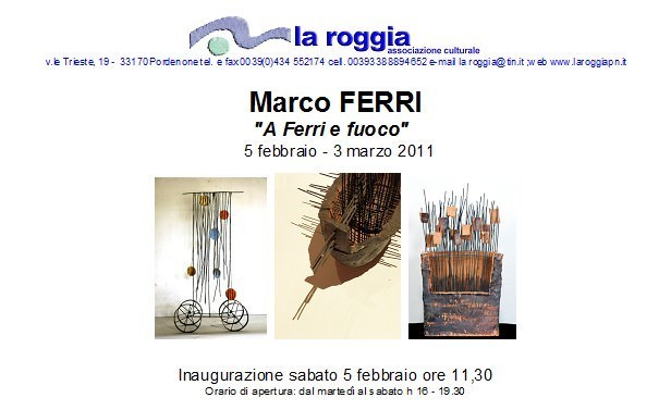 Per quanto riguarda la scultura, Carlo Fabrizio Carli, che ha curato la recente mostra di Ferri allestita nel settembre scorso presso la Galleria Arte Fuori Centro di Roma, nel sottolineare l’abilità di accostamento dell’artista tra vari materiali, così si esprime: “ per realizzare le sue sculture, Marco Ferri ricorre all’impiego insistito e linguisticamente caratterizzante, del più elementare filo metallico, magari già utilizzato e, alla bisogna, perfino di recupero da qualche discarica, comunque ricco di vissuto, accezione della scultura più elementare e antiretorica , più ascetica e disarmante è davvero difficile immaginare”. Mi piace aggiungere, a conclusione, che il titolo della mostra richiama il gusto della combinazione verbale di chiara ascendenza mattiana.