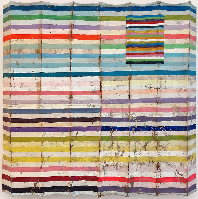La mostra in questione, che resterà aperta fino all’8 Gennaio 2022, raduna opere che ossessivamente si muovono sul terreno “atavico dell’equilibrio tra orizzontale e verticale”. Tuttavia “quello di Ferri non è un ludico divertimento tra il palese e il nascosto, cui il motto da lui scelto come titolo della mostra, ‘Tra le righe’, ironicamente allude.” (Aniello 2021). Lo spettatore, infatti, è invitato ad andare oltre la foresta di linee e tratti per cogliere nel timbro, sapientemente modulato dal pittore, l’essenza di un dialogo sotteso che emerge solo ad un secondo sguardo. Nella partitura armonico-melodica del gioco ortogonale dei tratti, è proprio il timbro ad incarnare la chiave di lettura delle opere, che conservano messaggi stratificati e profondi, come in una Fuga bachiana, come scrive Barbara Aniello nella sua presentazione, densa di parallelismi cromatico-musicali.