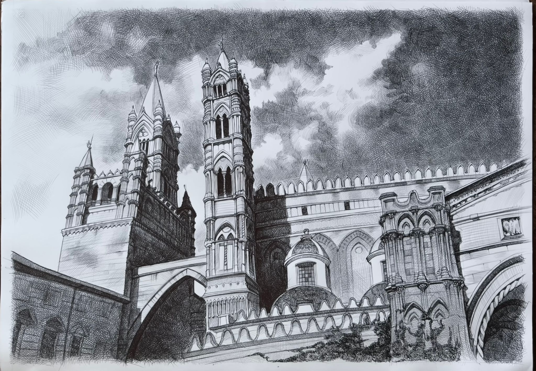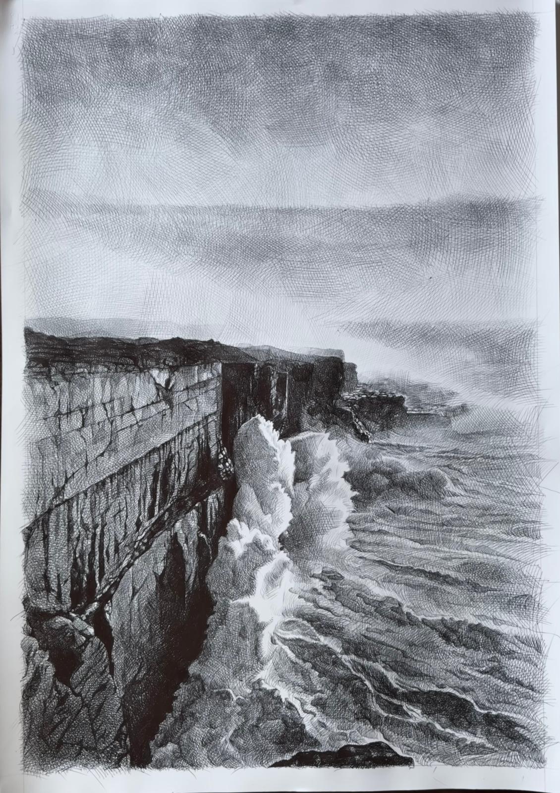 .La scelta della penna a biro ,elemento che poco si presta ad eventuali ripensamenti o errori,diventa mezzo attraverso il quale sviluppare un’atto meditativo concreto ,un mantra che attraverso l’intensita’ del segno trasmuta una visione fisica in una metafisica.