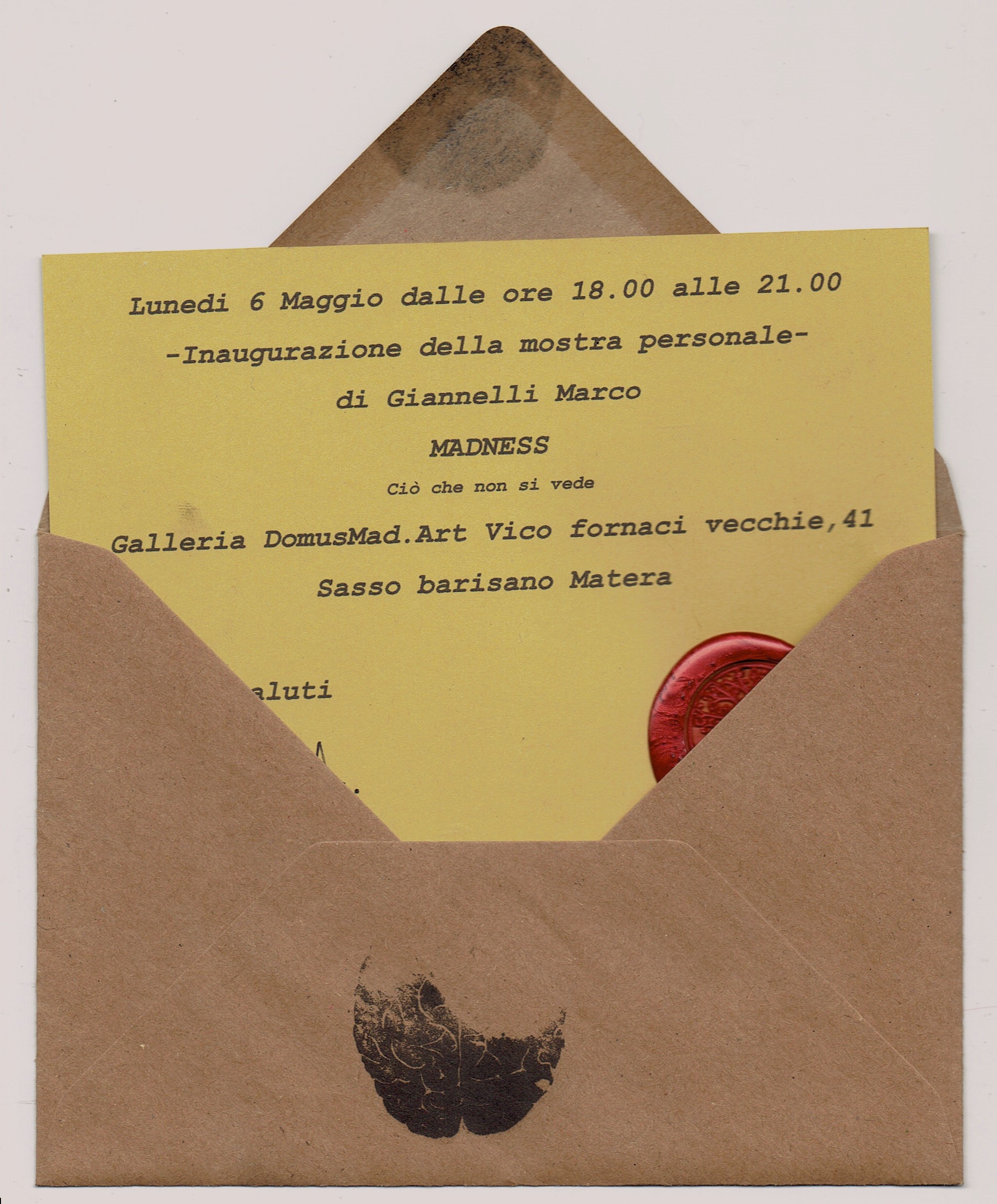 La Galleria Domus MadArt con la presente è lieta di invitarVi a partecipare all’inaugurazione della personale di Marco Gianelli “MADNESS-ciò che non si vede”