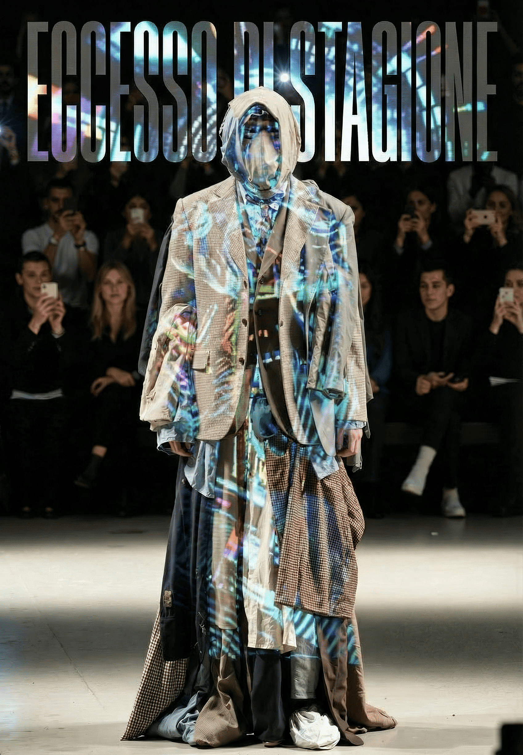 Eccesso di Stagione, installazione visiva di Marco Grassivaro con Ispira Creative Company, a cura di Simona Pinelli, dal 5 all’8 febbraio 2026. Videomapping che riflette sul sistema moda, il fast fashion e l’impatto ambientale attraverso animazioni di indumenti in movimento.