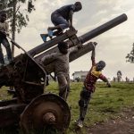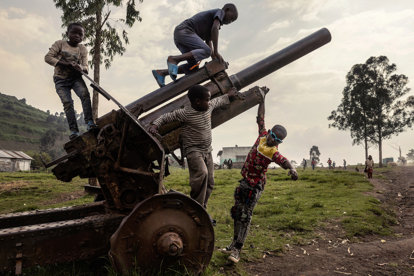 Per raccontare quel clima di guerra permanente che attraversa il continente africano a un’opinione pubblica che sembra ignorarlo, Marco Gualazzini sceglie un tipo di fotografia molto “pensosa” ma ciò che colpisce è la sua grande capacità di sintesi che si ritrova in una sola immagine. Un vecchio mortaio arrugginito punta inutilmente minaccioso la canna verso il cielo ma sono quattro bambini che lo usano come giocattolo a dirci che forse non tutto è perduto. Di fronte a questi contrasti laceranti bisogna avere il coraggio di guardare avanti recuperando quella dimensione della bontà che si nasconde, ma solo per chi non la vuole guardare, fra le pieghe della realtà. Così, nella spettacolare rovina della cattedrale haitiana di Port-au-Prince distrutta dal terremoto dobbiamo immaginare la bellezza simbolica del rosone ancora intatto.