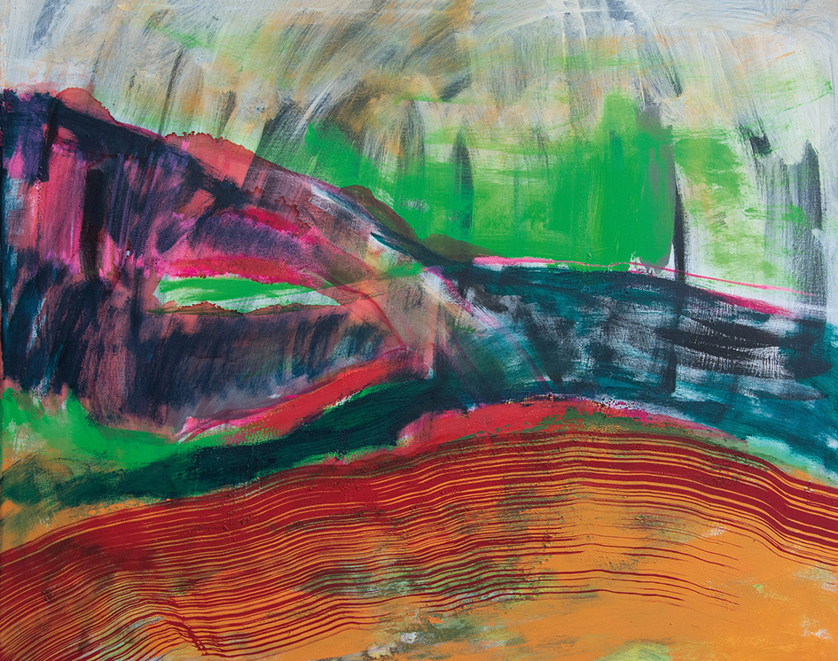 Arriviamo così al secondo carattere, oltre la matericità, che restituisce concretezza alla sua pittura: il dinamismo. Lo ritroviamo nelle linee improvvisamente smagrite, negli scorci prospettici arditi, negli impulsi gestuali intuibili dai segni con cui indaga il movimento intrinseco della natura. E, se guardiamo agli ultimi lavori, troviamo fasce dinamiche di colore che in tutto e per tutto sono linee controvertite che risolvono in maniera sorprendente la composizione. L’andamento del gesto infatti, parte chiaramente da destra verso sinistra, andando contro la naturale direzione dello sguardo. Questo perché l’artista vuole e deve essere scomodo nella sua ricerca per poter davvero sperimentare e portare la tecnica a un livello sempre superiore.